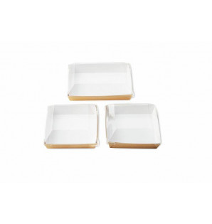 Prix 29,00 € HTConditionnement : 200AKN6Assiette en carton kraft, avec revêtement intérieur blanc en PET. Apte pour un passage au four et au micro-ondes. Ces assiettes kraft sont disponibles en 3 tailles : - AKN6 : 65 x 130 x h 30 mm et son couvercle ACC6 - AKN13 : 130 x 130 x h 30 mm et son couvercle ACC13 - AKN18 : 180 x 130 x h 30 mm et son couvercle ACC18 La gamme d'assiettes Cubik existe également en PS cristal ou noir, en bambou, en bois et en bagasse. -