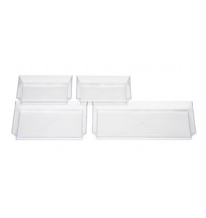 Prix 36,45 € HTConditionnement : 100ACU13CPetite assiette rectangulaire Cubik transparente, en PS recyclable. -