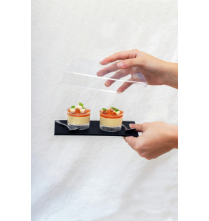 Prix 34,25 € HTConditionnement : 50CT27Couvercle en rPET transparent, adapté à la grande assiette Textura noire AT270 . -
