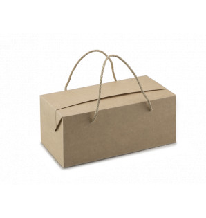 Prix 116,00 € HTConditionnement : 100FBG28KCoffret repas en carton kraft, avec deux cordelettes naturelles en guise d'anses. Son ouverture par le haut facilite le remplissage et donne une bonne visibilité de son contenu. Livré à plat, il se monte facilement grâce à son fond automatique, les cordelettes sont à insérer à la fin. Faubourg existe également en noir FBG28 -