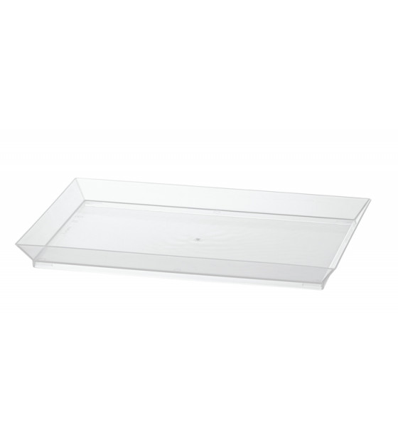 Assiette rectangulaire Cubik en PP transparent micro-ondable. Couvercle adapté en PP micro-ondable également (CCP18)