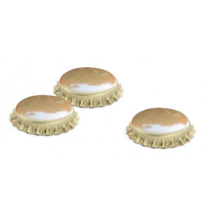 Bouchon en métal doré perforé, à visser sur les bouteilles Ampolia de 25 cl FAG250. La perforation permet l'insertion d'une paille pour une utilisation facile et ludique. La capsule a une fonction décoration non apte au contact direct avec les aliments.