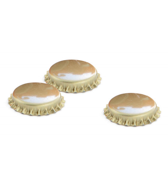 Capsule en métal doré à sertir sur nos bouteilles Ginto 20 cl BGT20. Adapté à toutes les bouteilles de bière classiques.