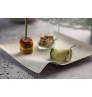 Prix 18,00 € HTConditionnement : 300AF260La gamme d'assiettes Fibra en bagasse blanche est composée de 3 assiettes carrées et d'1 assiette rectangulaire. - AF160 : 160 x 160 mm (surface utile 80x80) - AF200 : 200 x 200 mm (surface utilse 120x120) - AF260 : 260 x 260 mm (surface utile 155x155) - AF2820 : 280 x 200 mm (surface utile 220x140) Chacune peut également servir de mini plateaux de présentation, leur bord surélevé permettant une parfaite prise en main. -
