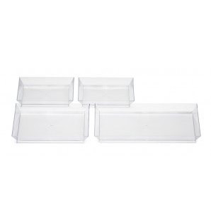 Petite assiette rectangulaire Cubik transparente, en PS recyclable. La gamme d'assiettes Cubik transparente se compose de : - ACM65C : 130 x 65 x h15 mm, et couvercle ACC6 - ACU10C : 100 x 100 x h15 mm, et couvercle ACC10 - ACU13C : 130 x 130 x h15 mm, et couvercle ACC13 - ACU18C : 180 x 130 x h15 mm, et couvercle ACC18 La gamme d'assiettes Cubik existe également en PS noir, en bambou, en bois, en bagasse et en carton.