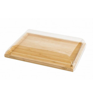 Couvercle en rPET transparent, adapté aux plateaux format Gastronorme 1/2 : - Timmera en bois