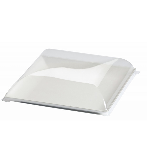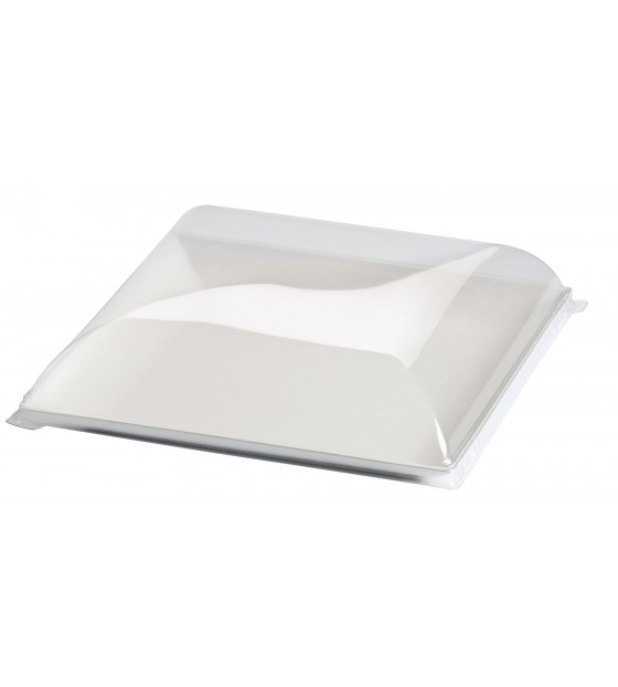 Couvercle transparent en rPET (recyclé et recyclable) d'une hauteur de 4 cm, adapté à l'assiette bagasse carrée de la gamme Komodo AK180