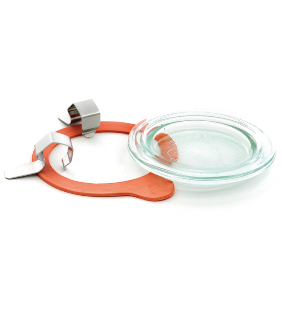 Clip inox à utiliser par deux pour maintenir les couvercles en verre et les joints en caoutchouc de la gamme Boko. Ainsi fermés hermétiquement, les bocaux en verre pourront être stérilisés.