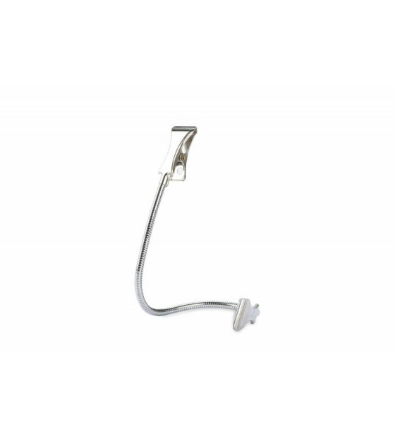 Porte étiquette chromé, flexible, avec deux pinces grandes ouvertures à chaque extrémité :