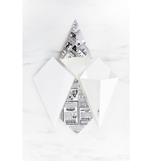 Cornet classique en carton résistant, disponible en 2 tailles, blanc CPB215, et en impression journal CPN215. Il est parfaitement adapté à la vente à emporter de frites, churros, bonbons... Vendu à plat pour optimiser le stockage, il prend forme très facilement et rapidement.
