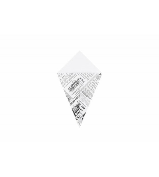 Cornet en carton résistant, disponible en 2 tailles, blanc CPB215, et en impression journal CPN215.