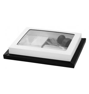 Couvercle en carton blanc avec fenêtre en PET, adapté aux plateaux repas Thema. Pour le fixer, il suffit de l'insérer à l'intérieur d'un socle Thema et de le clipser sur deux côtés. Il est recyclable et livré à plat (dimensions : 440 x 390 mm). Les couvercles Thema sont disponibles en plusieurs coloris : - Mandarine CTHM - Vanille CTHVA - Vert pomme CTHVP - Blanc avec fenêtre CTHF100 - Réversible noir ou fuchsia CTHF - Kraft CTHK