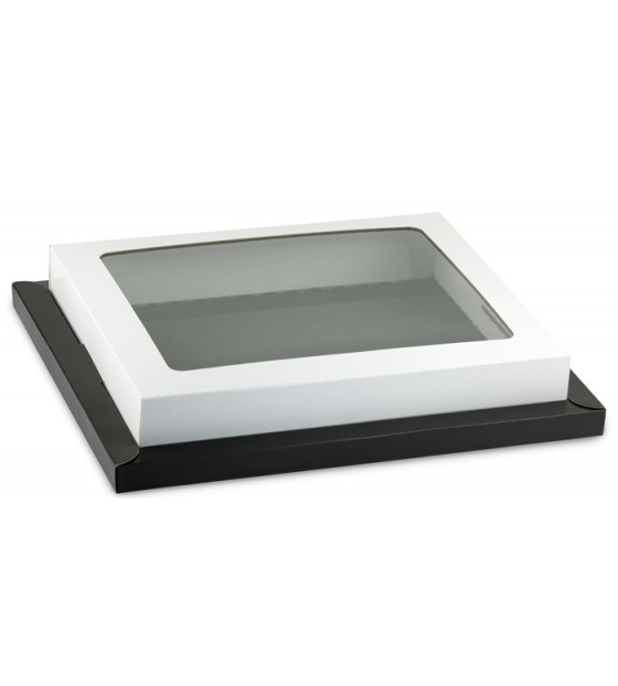 Couvercle en carton blanc avec fenêtre en PET (270x215 mm), adapté aux plateaux repas Thema. Pour le fixer, il suffit de l'insérer à l'intérieur d'un socle Thema et de le clipser sur deux côtés. Il est recyclable et livré à plat (dimensions : 440 x 390 mm). Les couvercles Thema sont disponibles en plusieurs coloris : - Mandarine CTHM - Vanille CTHVA - Vert pomme CTHVP - Blanc avec fenêtre CTHF100 - Réversible noir ou fuchsia CTHF - Kraft CTHK