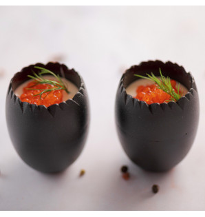 Verrine en PP, en forme de coquille d'œuf, parfaite pour des créations culinaires autour de l'œuf ! Son design avec un à-plat permet de la présenter en toute stabilité. Elle est apte à la congélation et au micro-ondes. Lavable, réemployable, puis recyclable en fin de vie. La gamme Oveo existe :