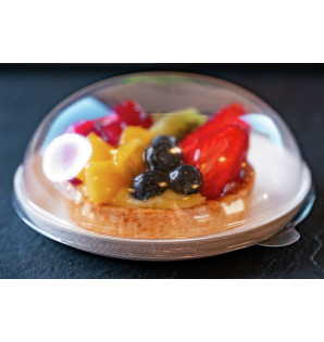 Couvercle dôme transparent, adapté aux assiettes Santo Ø120 mm. Fixé sur les assiettes, il permettra le transport sécurisé de tous types de créations culinaires. Avec une hauteur de 4.5 cm, les aliments sont protégés et parfaitement visibles. Ce couvercle, fabriqué à partir de matières recyclées, est recyclable. Les assiettes Santo compatibles sont : - En PP/talc gris AS120G, noir AS120N, blanc AS120B - En bagasse blanche ASB120