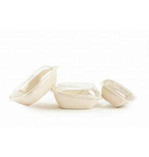 Petit bol en bagasse de 37,5 cl. Son couvercle (vendu à part) permet une bonne visibilité du contenu et facilite les superpositions.