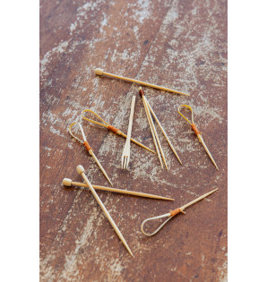 Mini fourchette en bambou, très fine et délicate. Elle peut servir de pique pour vos cocktails ou pour la vente à emporter. Existe également en grand format FGB140