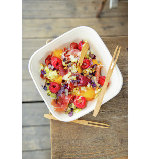 Grande pique effilée en bambou avec 2 dents. Résistante et qualitative, elle est parfaite pour attraper des aliments dans des contenants en hauteur.