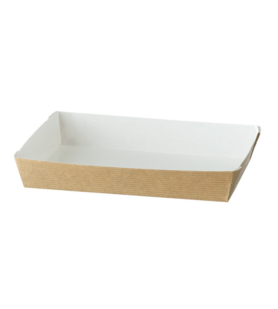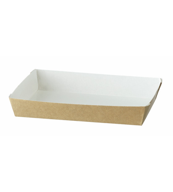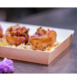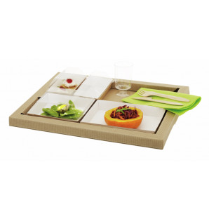 Assiette en carton kraft, avec revêtement intérieur blanc en PET. Apte pour un passage au four et au micro-ondes. Ces assiettes kraft sont disponibles en 3 tailles : - AKN6 : 65 x 130 x h 30 mm et son couvercle ACC6 - AKN13 : 130 x 130 x h 30 mm et son couvercle ACC13 - AKN18 : 180 x 130 x h 30 mm et son couvercle ACC18 ou micro-ondable ACP18 La gamme d'assiettes Cubik existe également en PS Cristal ou noir, en bambou, en bois et en bagasse.