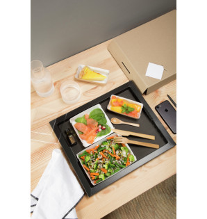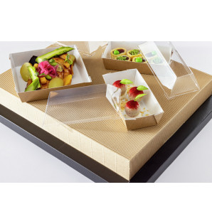 Assiette en carton kraft, avec revêtement intérieur blanc en PET. Apte pour un passage au four et au micro-ondes. Ces assiettes kraft sont disponibles en 3 tailles : - AKN6 : 65 x 130 x h 30 mm et son couvercle ACC6 - AKN13 : 130 x 130 x h 30 mm et son couvercle ACC13 - AKN18 : 180 x 130 x h 30 mm et son couvercle ACC18 La gamme d'assiettes Cubik existe également en PS cristal ou noir, en bambou, en bois et en bagasse.