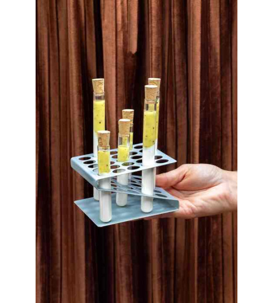 Cette grille en aluminium avec 25 perforations est utilisée pour remplir ou présenter des mini préparations dans des contenants très originaux :
