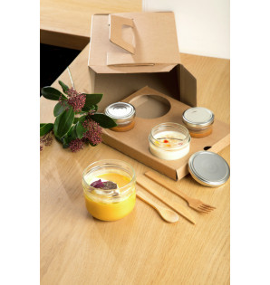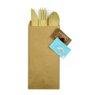 Couverts en bambou résistants, vendus en vrac (100 couverts de chaque). Agrémentés d'un vernis alimentaire, ces couverts de haute qualité sont parfaits pour vos formules sélectives de vente à emporter. La gamme de couverts Bambou Premium se décline : - Couteau : CBB17, 170 mm - Fourchette : FBB17, 170 mm - Petite cuillère : PCB15, 115 mm Les couverts disponibles en vrac KBA300 et en kits : KBA312, KBA412, KBA612