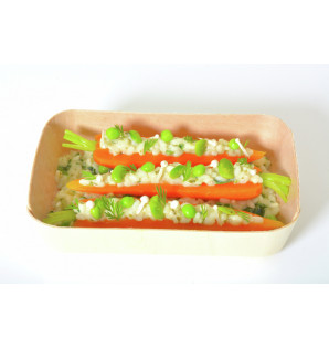Cette barquette offre une solution complète et écoresponsable pour vos repas à emporter. Étanche, ingraissable et apte à la cuisson au four traditionnel (jusqu’à 200 °C) et au micro-ondes, elle offre ainsi une grande polyvalence pour vos préparations culinaires.