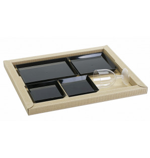 Kit vaisselle Cubik en PS noir avec couvercles en RPET (h30 mm), composé de : - 1 assiette 180x130xh15mm ACU18N et couvercle ACC18 - 1 assiette 130x130xh15mm ACU13N et couvercle ACC13 - 2 assiettes 100x100xh15mm ACU10N et couvercle ACC10 Ce kit version C, adapté à nos plateaux repas Thema, est également disponible en PS transparent KITVC
