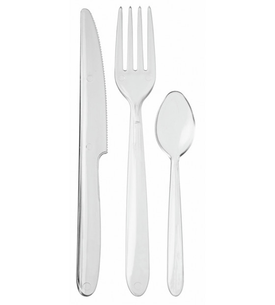 Kit couverts Luxor en PS transparent très qualitatifs, composé d'une fourchette, un couteau, une cuillère, une serviette, sel et poivre. Avec leur design contemporain tout en transparence ils sont agréables à utiliser, lavables et réemployables. La gamme Luxor se décline en 4 kits : - en noir brillant, kits 4/1 et 6/1 KL41N et KL61N - en transparent, kits 4/1 et 6/1 KL41C et KL61C