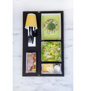 Kit couverts Luxor en PS noir très qualitatifs, composé d'une fourchette, un couteau, une cuillère, une serviette, sel et poivre. Avec leur design contemporain, ils sont agréables à utiliser, lavables et réemployables. La gamme Luxor se décline en 4 kits : - en noir brillant, kits 4/1 et 6/1 KL41N et KL61N - en transparent, kits 4/1 et 6/1 KL41C et KL61C