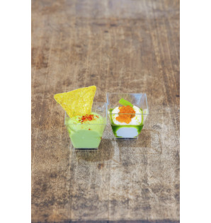 Fabriquée en France à partir de polystyrène transparent recyclable, elle conjugue qualité, esthétisme et engagement environnemental. Sa transparence cristalline met en lumière les jeux de textures et de couleurs, apportant une dimension visuelle soignée à chaque préparation.