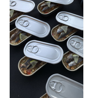 Boîte de 5 cl en aluminium, inspirée des boîtes de conserve d'anchois.