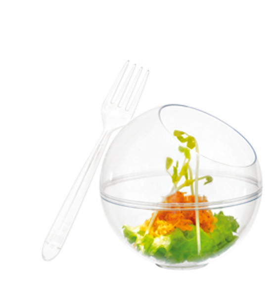 Petite fourchette STARCK® en PS transparent de 14 cm. Sa taille est parfaite pour le snacking à emporter, barquettes de frites, Buddha bowls, salade de fruits...