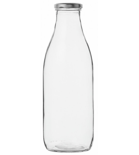 Bouteille en verre style bouteille de lait, avec un bouchon métallique à visser, dont le joint est pasteurisable. En version 1 litre, elle convient à la vente à emporter de boissons fraîches, de jus de fruits ou tout simplement d'eau. Elle est parfaitement adaptée aux formules de consigne. Elle est réutilisable et recyclable. Disponible en 25 cl MLK250 et 50 cl MLK500.