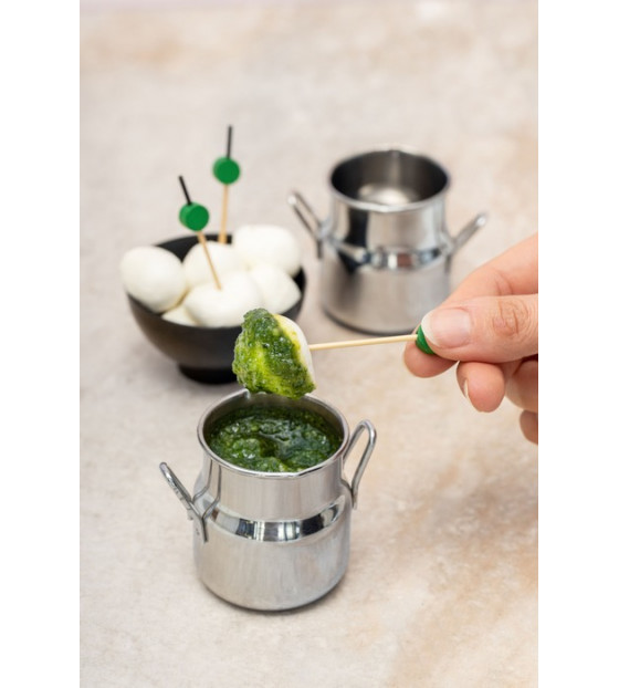 Mini pot à lait en acier inoxydable avec deux anses. D'une contenance de 8 cl, ce joli pot apportera une touche ludique à vos présentations.