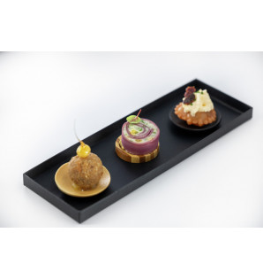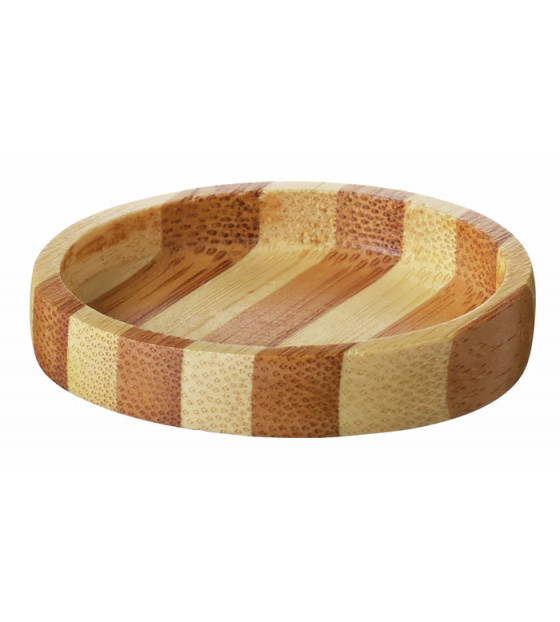 Mini coupelle ronde en bambou bicolore, pour la présentation raffinée de bouchées apéritives. Réutilisable.