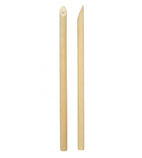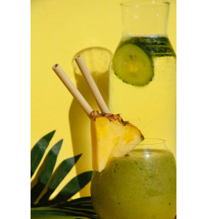 Paille naturelle en bambou de grand diamètre Ø8 mm, avec une extrémité biseautée : orientée vers l'intérieur du verre elle l'empêchera de s'obstruer. Elle est particulièrement adaptée aux boissons à composantes de plantes comme les mojitos...