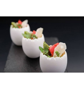 Prix 51,40 € HTConditionnement : 200MCV30Verrine en PP, en forme de coquille d'œuf, parfaite pour des créations culinaires autour de l'œuf ! Son design avec un à-plat permet de la présenter en toute stabilité. Elle est apte à la congélation et au micro-ondes. Lavable, réemployable, puis recyclable en fin de vie. La gamme Oveo existe : en noir 5 cl CV50N et 3 cl MCV30N en blanc 5 cl CV50 et 3 cl MCV30 -