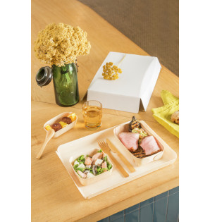 Pratique, élégant et respectueux des exigences alimentaires, le plateau Madera conjugue tradition, fonctionnalité et engagement durable.