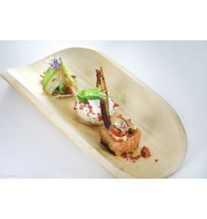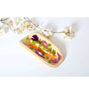 Mini plateau rectangulaire (21x9 cm) en bambou naturel, épais et résistant. Il peut être utilisé en assiette de dégustation pour donner un caractère naturel à vos présentations.