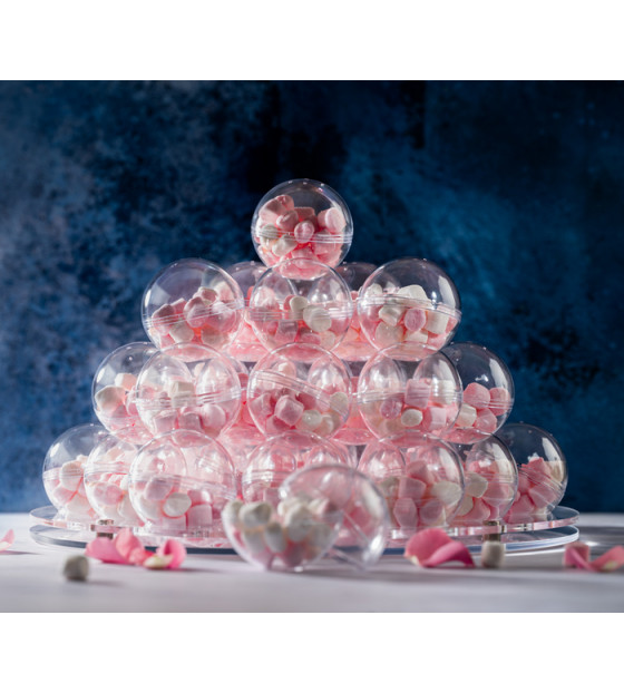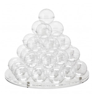 Disque transparent de 19 alvéoles, fixé sur un socle, pour la présentation pyramidale de 42 Mini Perla de 5 cl BPC5.