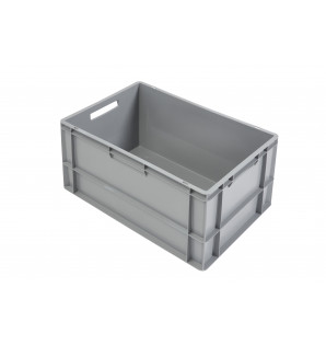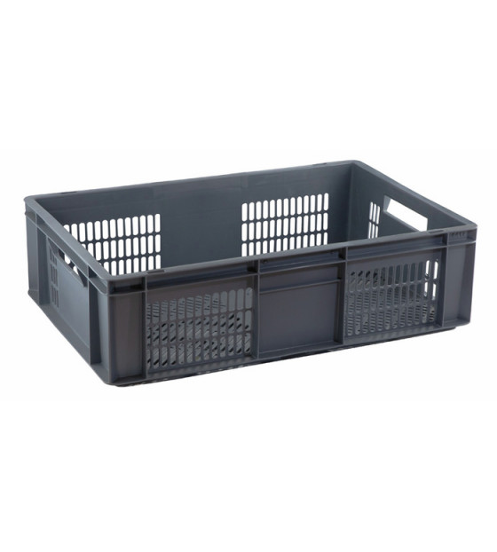 Bac Euronorme ajouré de 40 litres, en polypropylène gris, lavable et réemployable.