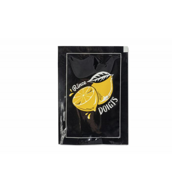 Lingettes rince-doigts, sans paraben, en papier recyclable. Emballées individuellement, elles sont idéales sur une table, un buffet ou en vente à emporter pour se nettoyer les mains après un repas. Elles sont imprégnées d'une agréable senteur de citron qui laisse les mains fraîches et propres.