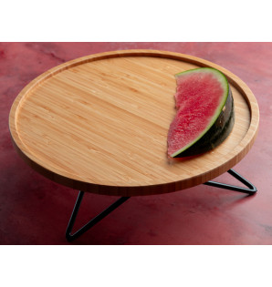 Support en métal noir au design épuré et soigné, doté d'un revêtement anti-dérapant. Il permet la présentation de plateaux ou de planches à une hauteur de 105 mm. Il peut être combiné avec le support Obvie SMN200 haut de 200 mm. Fabriqué artisanalement en France.