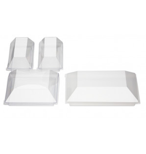 Le plateau peut être complété avec l'un de nos kits vaisselle Cubik, avec ou sans couvercles.