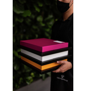 Socle en carton pour le plateau-repas Thema, à combiner avec un couvercle de différentes couleurs :