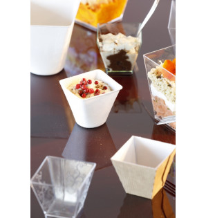 Verrine emblématique de forme évasée, Kova se décline en plusieurs matières et contenances, vous permettant de créer de nombreuses ambiances de buffets ou réceptions. Fabriquées en France, les verrines Kova sont recyclables. Ce modèle de 6 cl se ferme avec un couvercle transparent CK50.