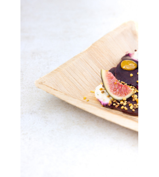 Assiette naturelle rectangulaire, en gaine foliaire de palmier. Passe au four et au micro-ondes. La gamme Palma existe en différents formats : - APA17 : 170 x 120 x 25 mm - APA18 : 180 x 180 x 25 mm - APA24 : 240 x 160 x 25 mm Également disponible en kit vaisselle dans les plateaux repas Biodine BK4A, BK4AN, BK3B et BK3BN
