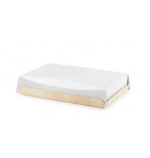 Prix 53,00 € HTConditionnement : 100CCPM30Couvercle carton blanc à insérer dans le plateau Madera PMB30 . Il permet d'empiler les plateaux et de protéger leur contenu durant le transport. -