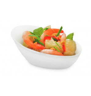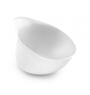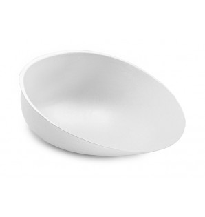 Prix 27,50 € HTConditionnement : 100KAB87SCoupelle en bagasse blanche, au design asymétrique et épuré. Elle peut être associée avec l'assiette assortie KAB163L -